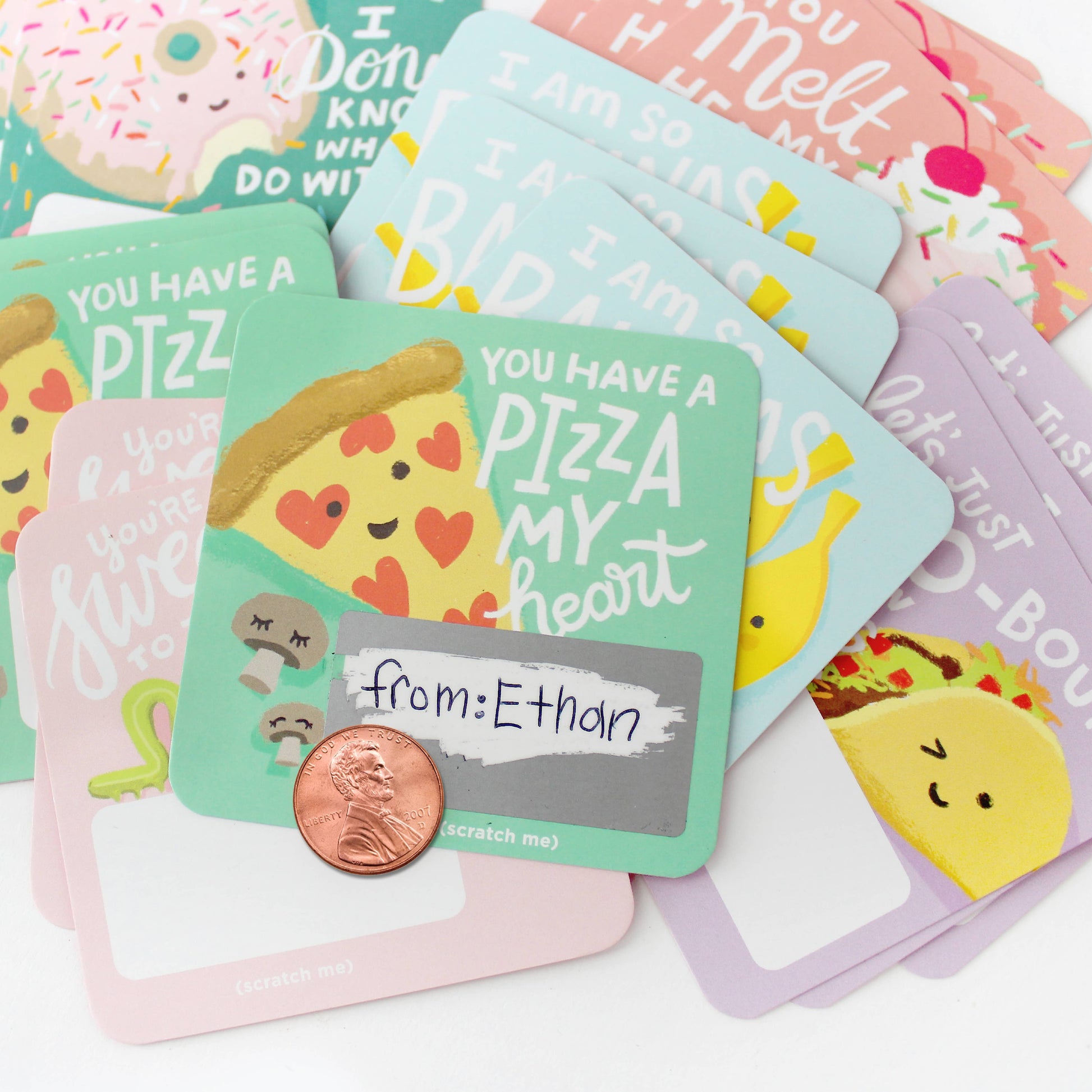 • 3 each of 6 designs: You're Sweet to the Core, You have a Pizza my heart, Let's just Taco-bout how amazing you are, You melt my heart, I am so Bananas for you!, I Donut know what I'd do without you