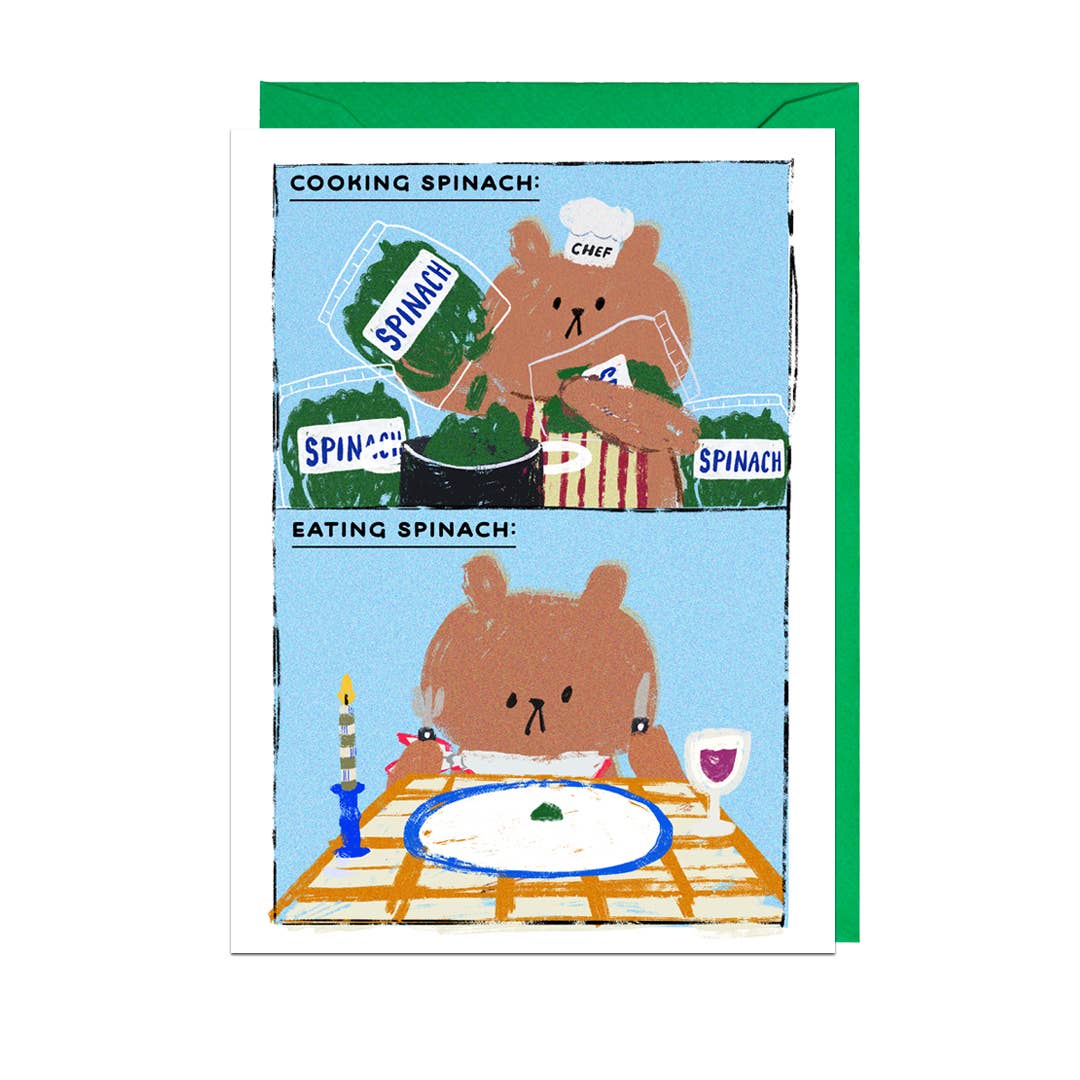 Meet Bear, a character you've just met but feels like an old friend. The kind of friend who knows that the struggle is real, in life and in spinach.